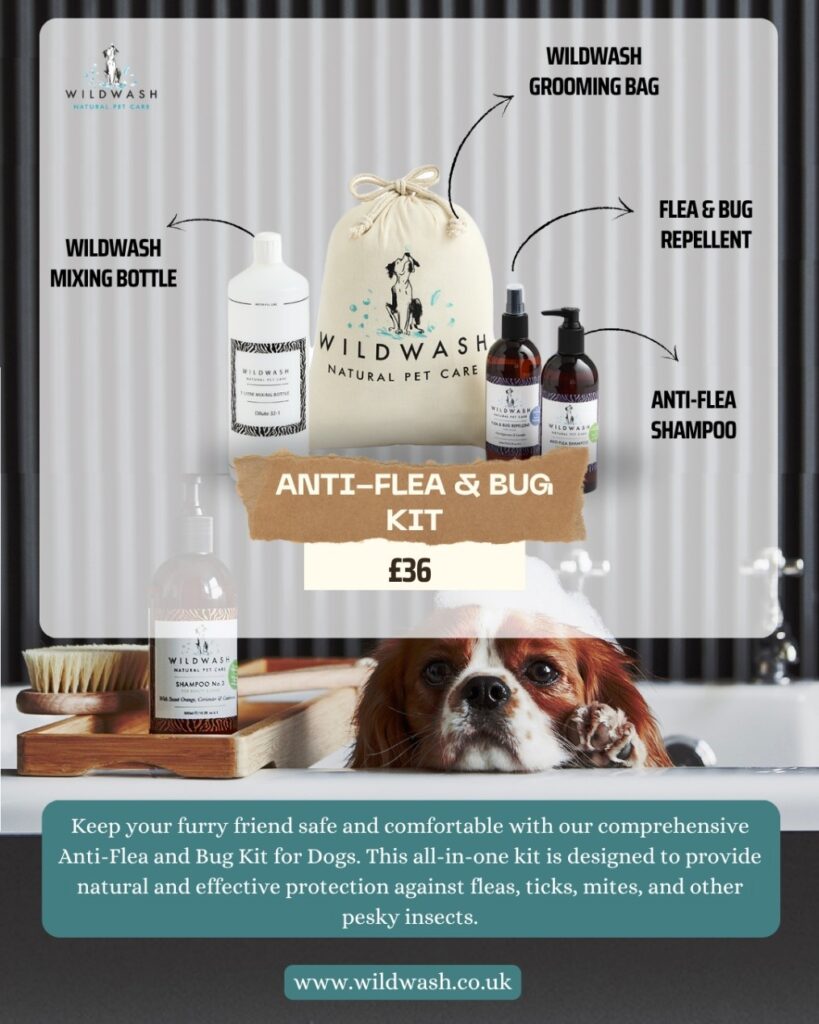 Our dogs are naturally curious explorers, often the first to plunge into grassy verges or bushy areas where bugs love to hide. That’s why preventative measures are so crucial. Imagine your dog bounding through fields, happy and carefree, knowing they’re well-protected. We highly recommend the WildWash Anti-Fleas and Bugs Bundle, a perfect duo designed to keep those pesky critters from hitching a ride.